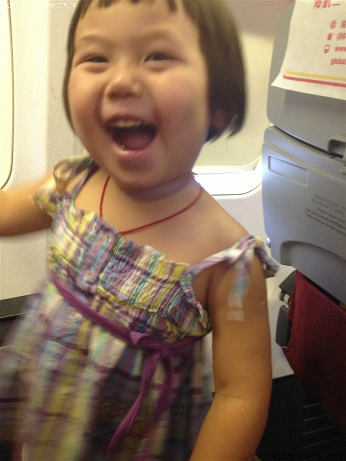 狗爸爸真的是笨蛋啊,本来人家在飞机上睡得好香的,结果狗爸爸吧小家伙抱下飞机的时候一耸,又把小家伙的脑袋撞飞机的行李架上了。。。。。把小家伙给撞醒了。。。。。。