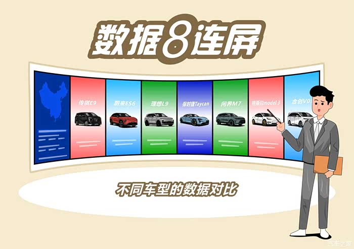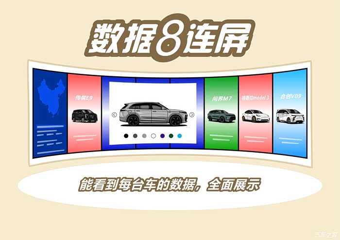 这个8连屏我觉得挺不错的,每款车的续航、电耗、车身尺寸等等数据都能很直观看到,还有横向对比