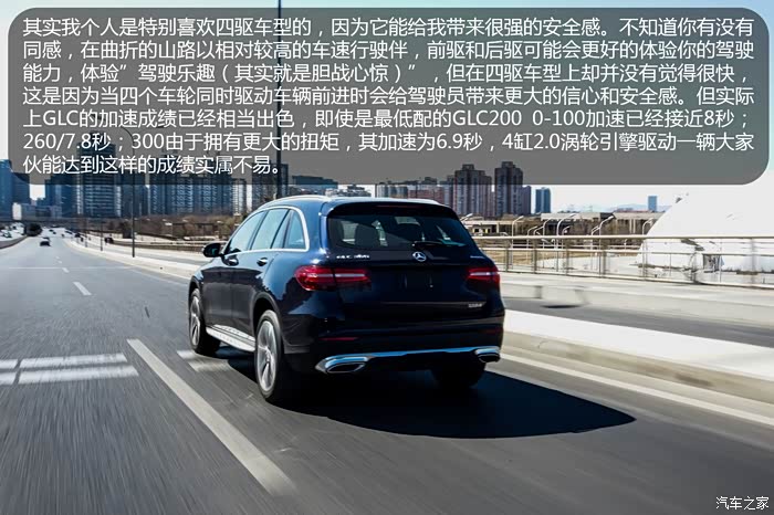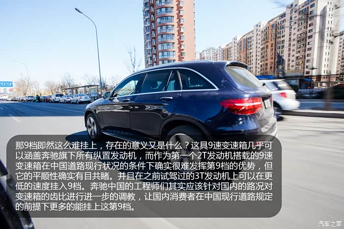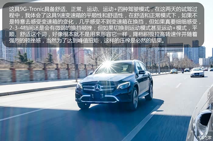 同级别的SUV其实我也都有接触,虽然每个车都有自己的卖点和优势,但经过这两天更深入的了解,我个人感觉GLC作为这个级别的标杆、领头羊均当之无愧。2.0涡轮增压搭配四驱或者后驱本来就是我很喜欢的搭配,当然了如果预算足够能上到3.0六缸搭配四驱或者后驱那肯定更好。但是在现在这个国际大趋势下连XC90、X5、7系、A8、Q7等D级车以及中大型SUV都普遍接受4缸涡轮增压这个配置的时候,我想拥有一辆六缸车的希望越来越渺茫了。有点儿扯远了,虽说4缸涡轮增压在平顺性上依然无法与V6自然吸气发动机相比(这是物理瓶颈),但在涡轮的加持下无论是功率也是扭矩都已经全面超过了普通的V6自然吸气发动机的输出水平,但在9速自动变速箱的帮助下,其平顺性、舒适性也已经有了相当大的提升。当然如果你想要来点儿刺激的,调整到sport模式甚至sport+模式,当时就会有手足无措,难道这还是我那辆平顺舒适GLC么?为了压榨更大的扭矩,变速箱积极降档维持高转,仿佛不舍得让你把档位升上去,换挡时也伴随着及明显的顿挫,这当然不是缺点,而是它的乐趣所在。