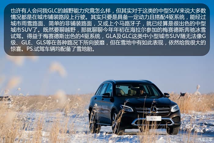 其实本次试驾前我就与GLC有过一些接触,年初的海拉尔冰雪试驾就已经对GLC这个中型城市SUV很有好感,虽然当时设置的挑战并没有像G级、GLS、GLE这类专业越野或者中大型SUV那么苛刻,但也依旧显示出它的实力;GLC那养眼的外观,出色的内饰、强劲的动力,也是我自己换车的备选车型之一。
