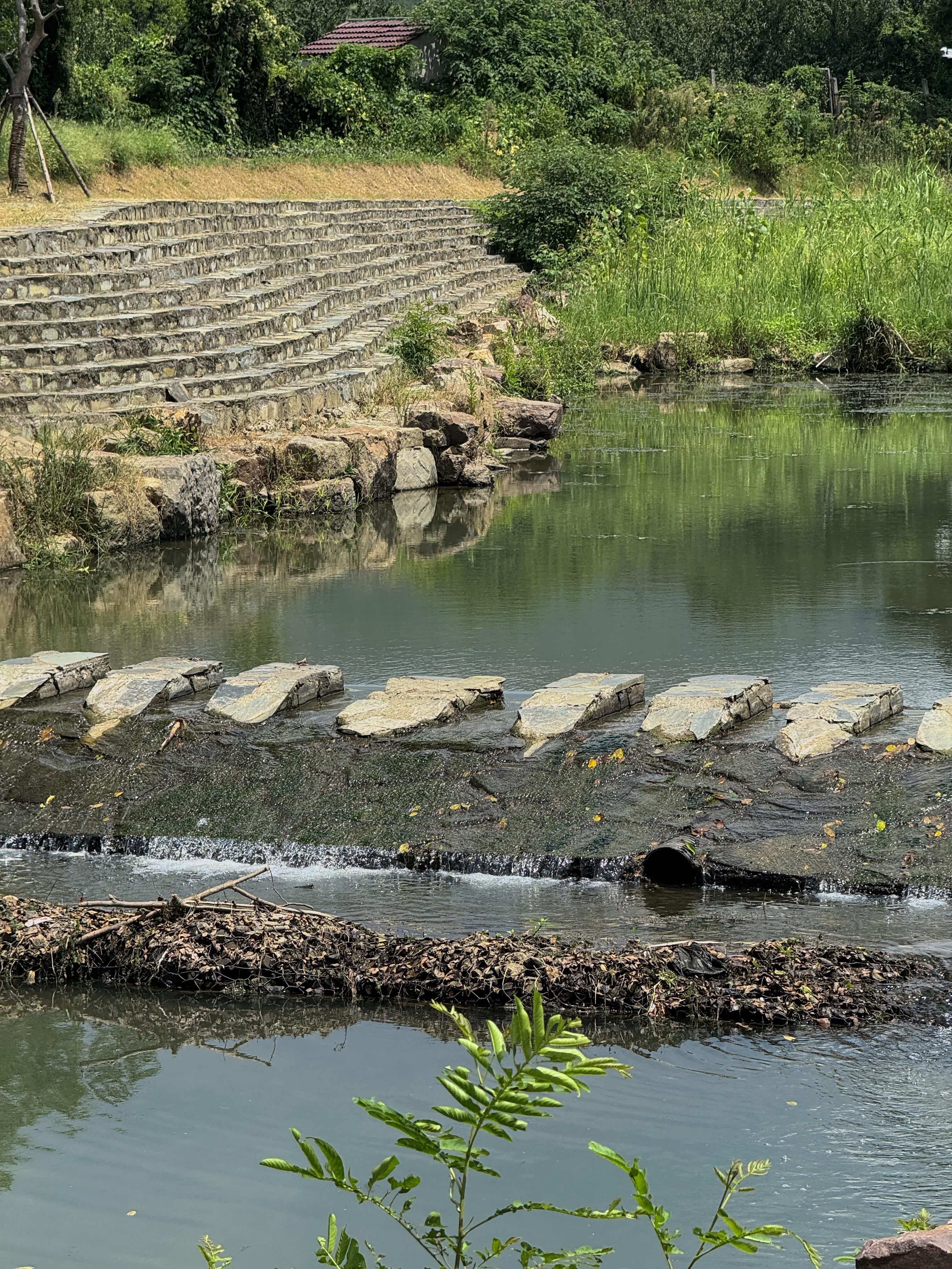 潼渚古桥是村子的“灵魂地标”,桥面由青石板铺就,两侧的护栏上刻着简单的花纹,虽历经百年风雨,却依旧坚固。清晨时分,桥上常有村民晾晒衣物、闲聊家常,孩子们在桥边的石阶上玩水,充满烟火气;午后阳光柔和时,坐在桥边的石凳上,看乌篷船缓缓划过,听船桨划水的“咿呀”声,仿佛穿越回旧时江南。