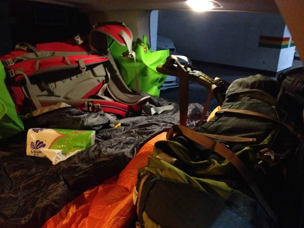 其他各种衣物、饮品、帐篷睡袋、手电、工具、气垫床打气泵、电子设备等略过不表……