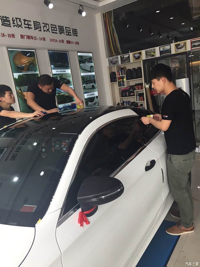 师傅正在认真的贴天窗中哦