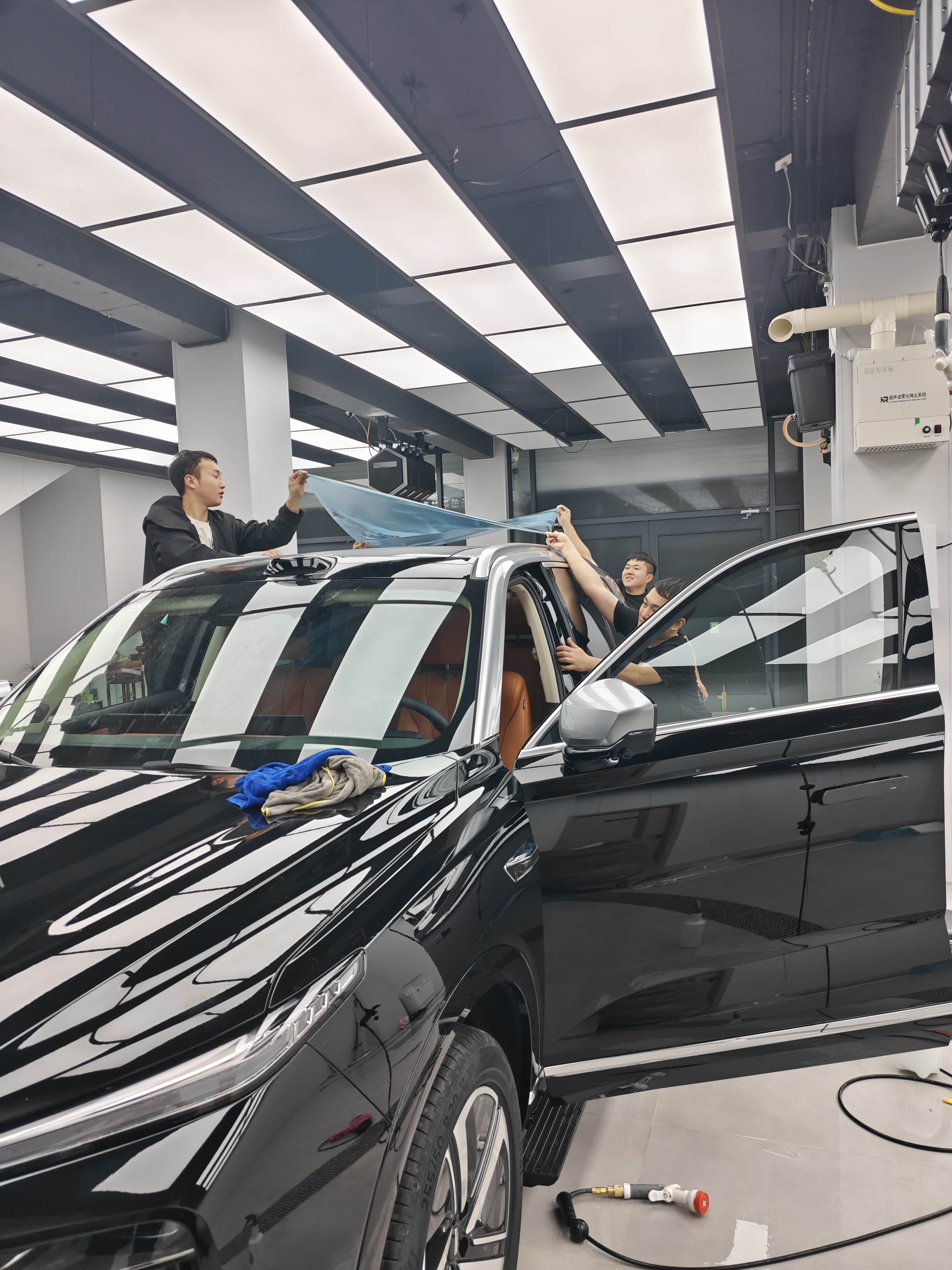 新车回家以后第二天就安排上了车衣,这玩意有说有用的有说没用的,万八千的不舍得贴,弄个几千块的贴一下就得了,主要是喜欢银色悬浮顶,早就从网上看到过,太帅了必须安排上。