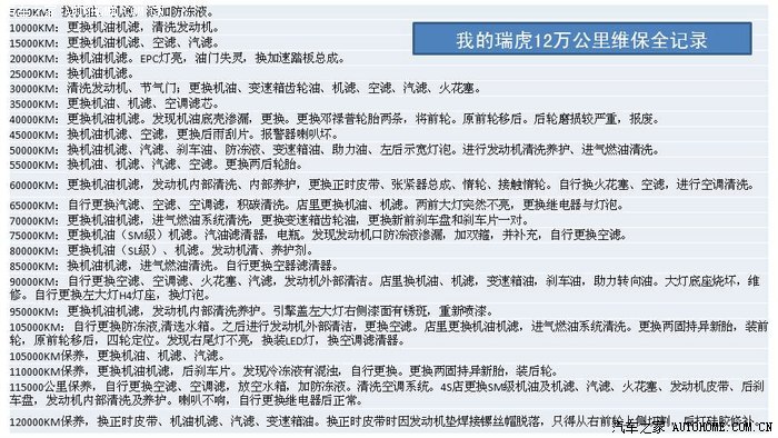第三是车要好养,排量不能太大,2.0是极限,否则用不起。不过我车开习惯好,车到我手里都挺省油的,但愿瑞虎五也是。除了用油外,小保养最好能DIY,太贵的车不敢动手。