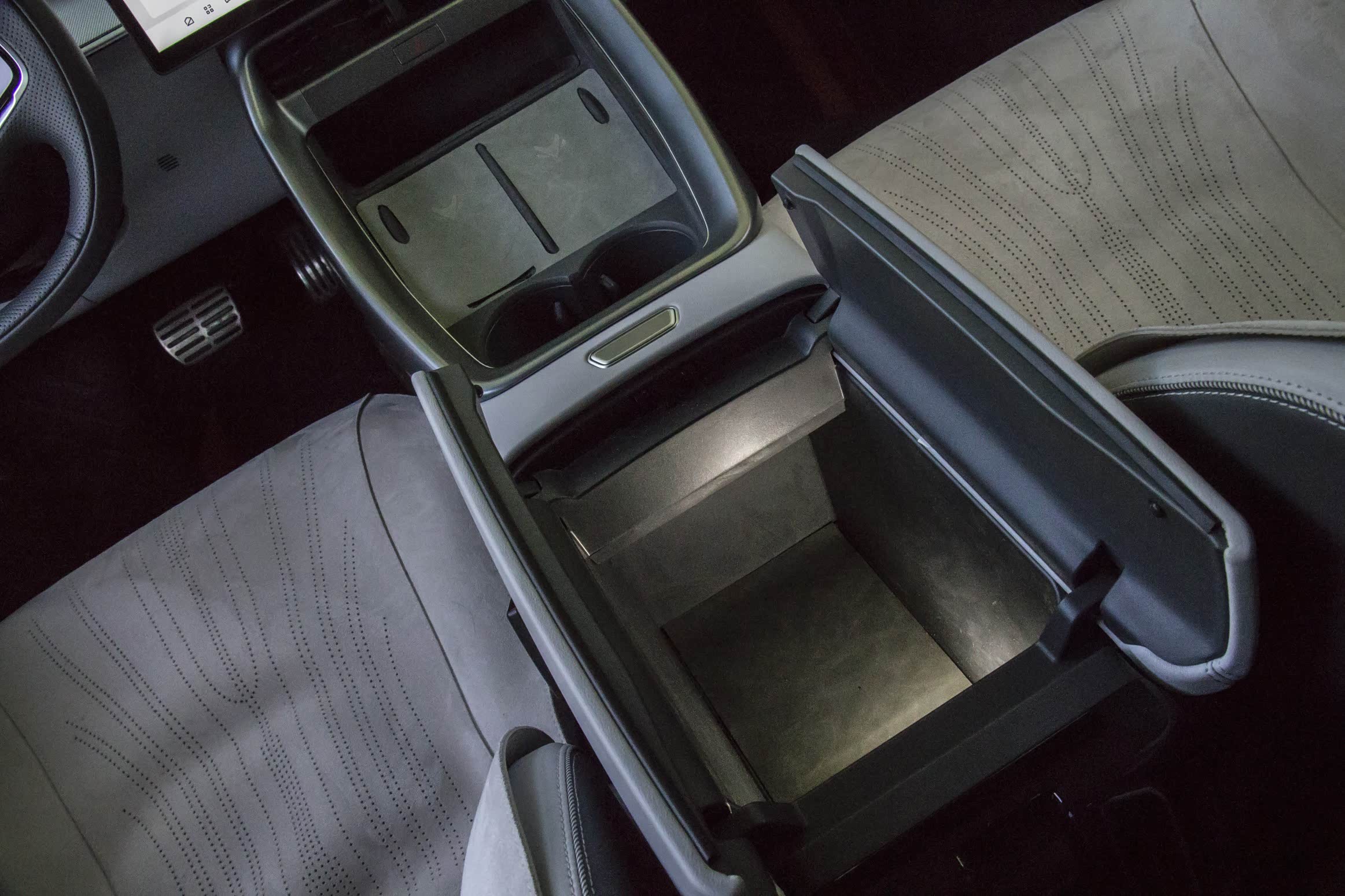 换挡机构设计为怀挡让中央扶手处的空间更大了,扶手底部空间能更好的利用。就是灯的开关要在中控屏里去操作,刚开始觉得不习惯,但目前已经适应。
