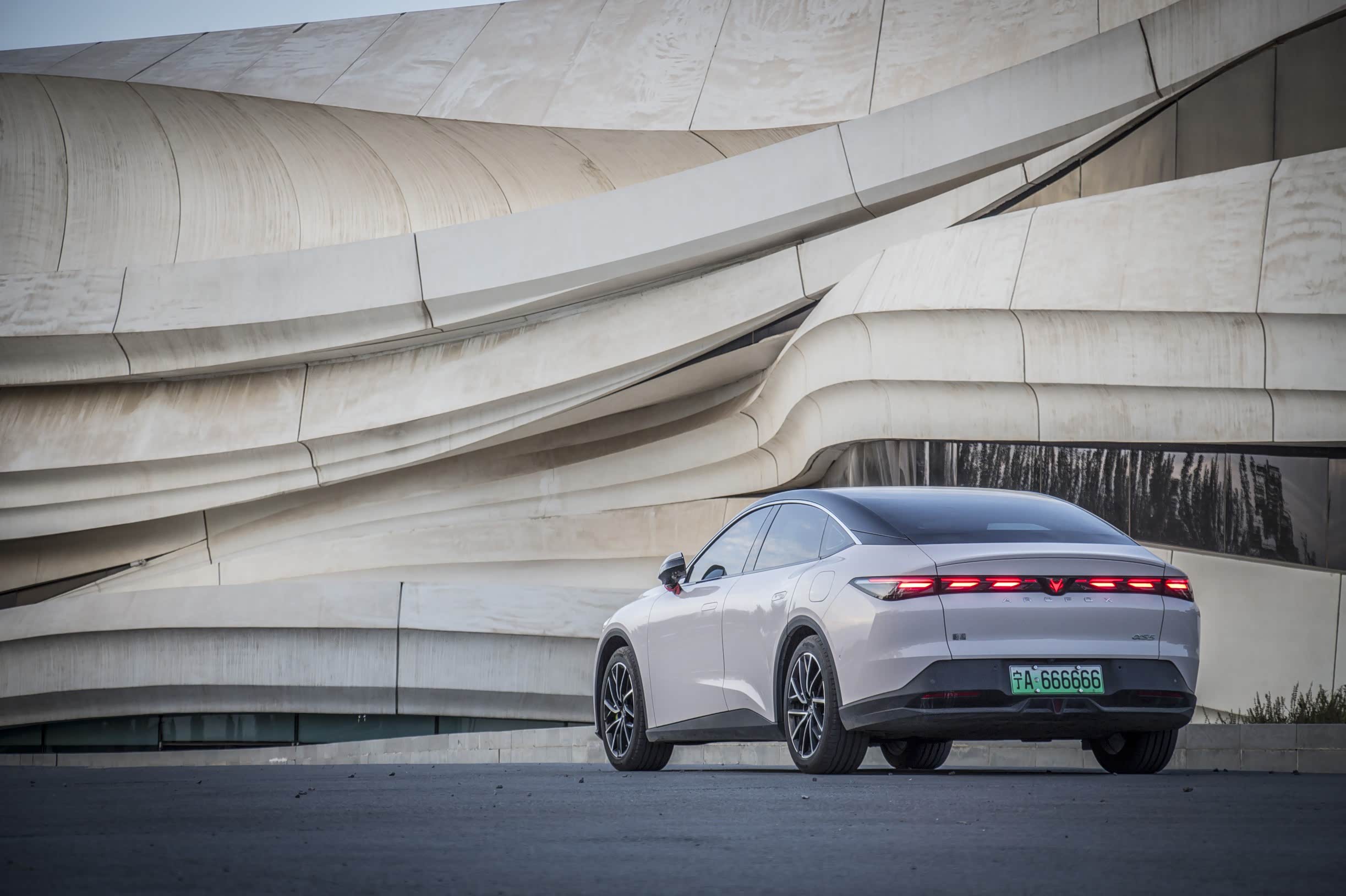 侧面流线型设计,溜背式车顶、隐藏式门把手、圆润的后视镜外壳都在为这条流线做铺垫。