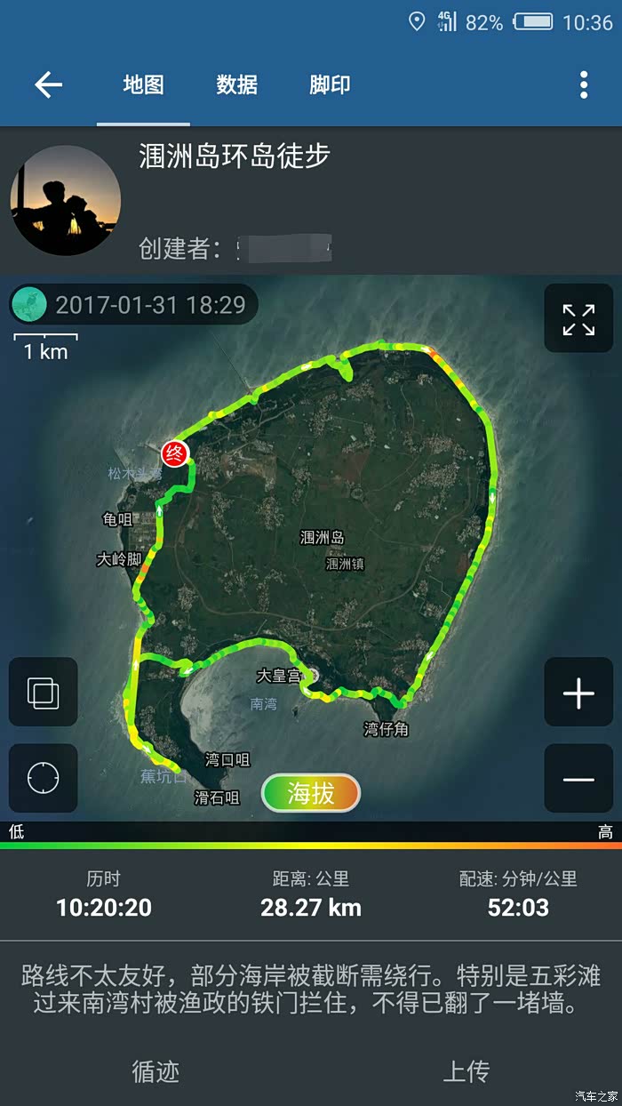 涠洲岛徒步海岸线环岛线路不太友好,东岸有几个地方需绕行,好在有些地方恰逢退潮,可以直穿而过。五彩滩到南湾村的边上居然有道铁门把路给截断了,不得已翻了围墙,可以想象,背着几十斤的背包翻墙是什么感受。
