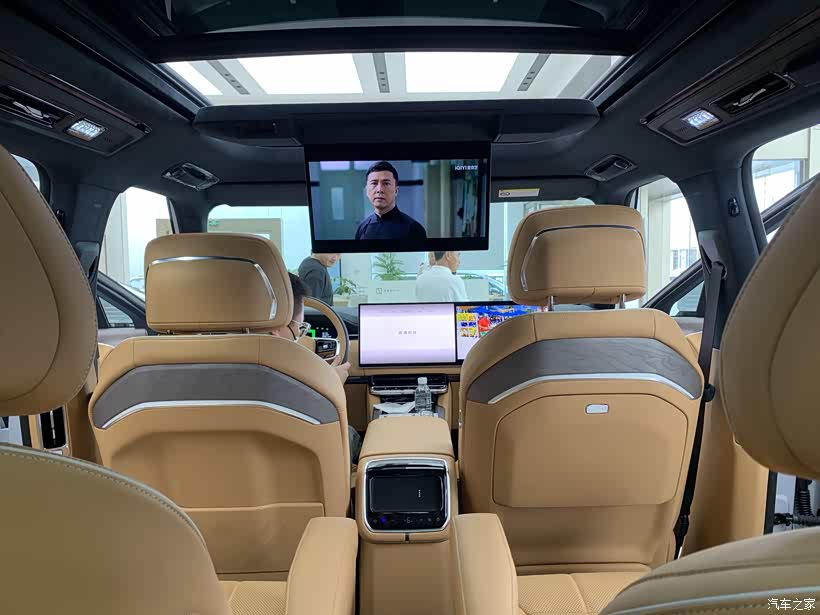 7、后排娱乐屏是亮点,保留大天窗的同时,还能前后调屏幕,再也不担心观看距离了。