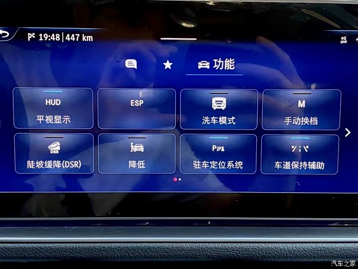2024款奔驰GLS450的车机系统奔驰全面做了一次升级,由老款的HU6系统改成了HU7系统,所以各个功能配置开关选项也出现了变化,奔驰GLS450加装完HUD抬头显示系统之后的开关位置在中控屏幕往下拉,然后顶部位置有一个车辆功能选项,在这个选项里就会有HUD平视的选项,这个就是抬头显示的总开关。