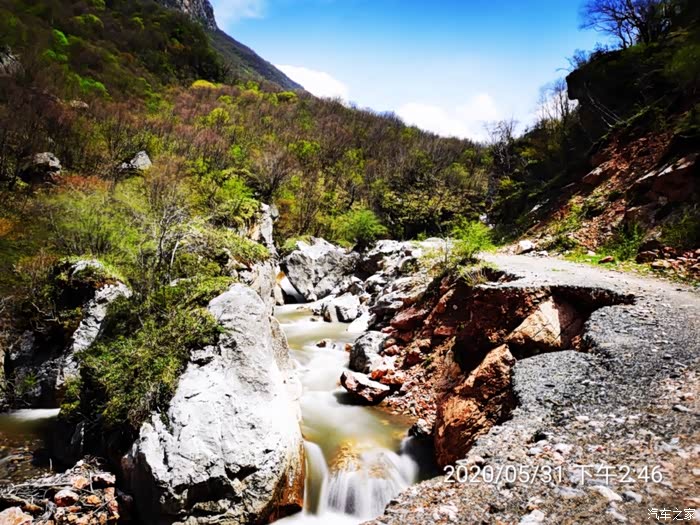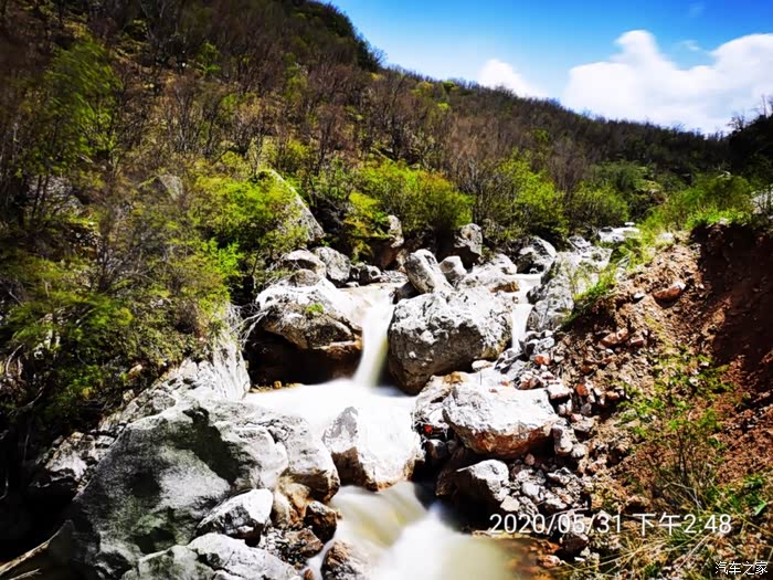 。十点多我们汇合后出发时,我感觉一是昂科威底盘还是稍微有点低,进崎岖山道时跑不起来,当然,跑柏油路那可是杠杠的;二是车比较新,又是承载式车身,跑山道比较耗车,怕张教授心疼
