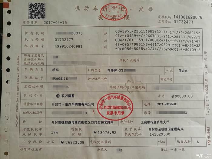 ,立马打的直奔开封市魏都路哈弗4S店。开封市的哈弗4S店把蓝标车和红标车分开销售了,蓝标在魏都路和集英街交叉口南侧那个店,红标车在金明大道连霍高速口北那个店里。我和我媳妇儿其实自H2S上市就已经关注了。我们都喜欢蓝标版,感觉这个蓝标看着顺眼(红标版车主勿喷哈,审美不同而已