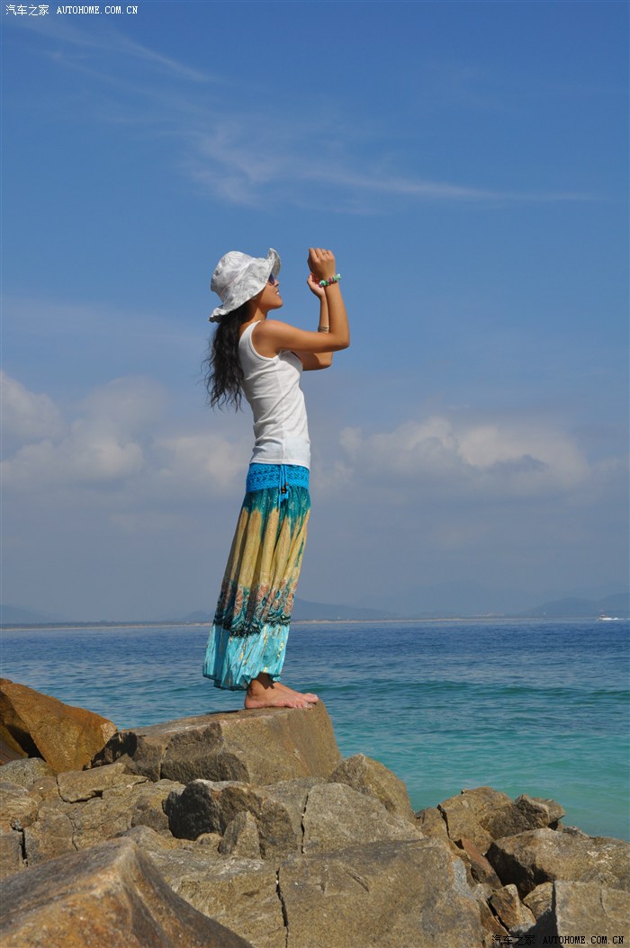 这张很有感觉,蓝天,大海,岩石,美女