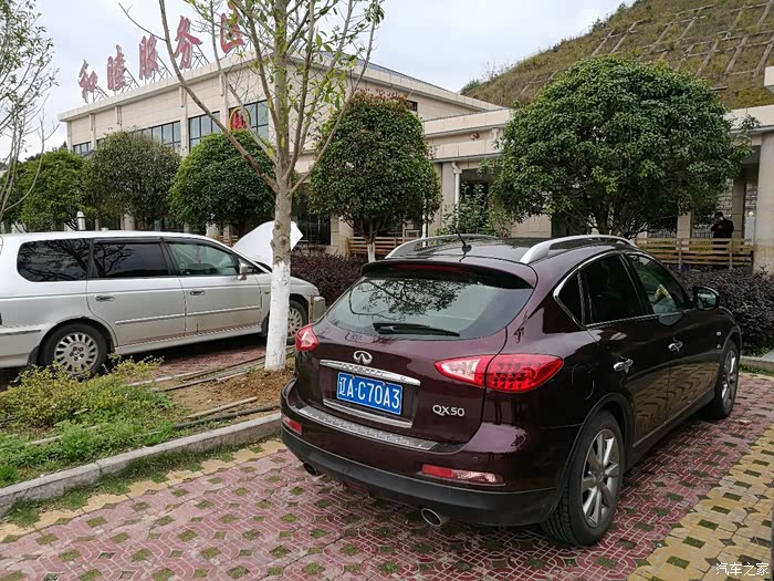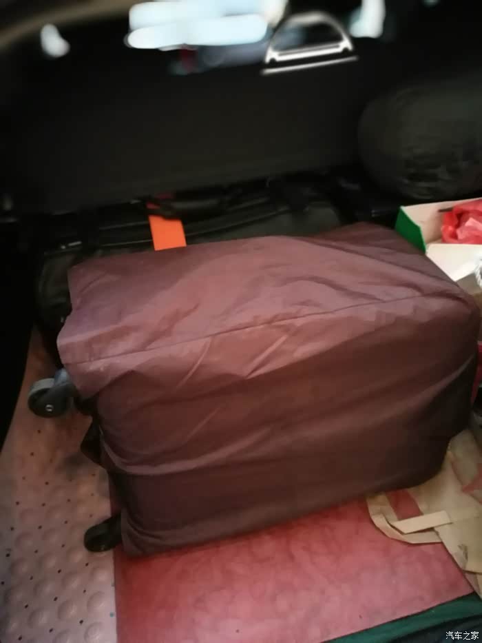 QX50的后背箱小,是不争的事实。我采取出行拿软拉杆箱,皮的放入里面,再放一纸盒箱,备份机油,冷却水,玻璃水和一些杂物。