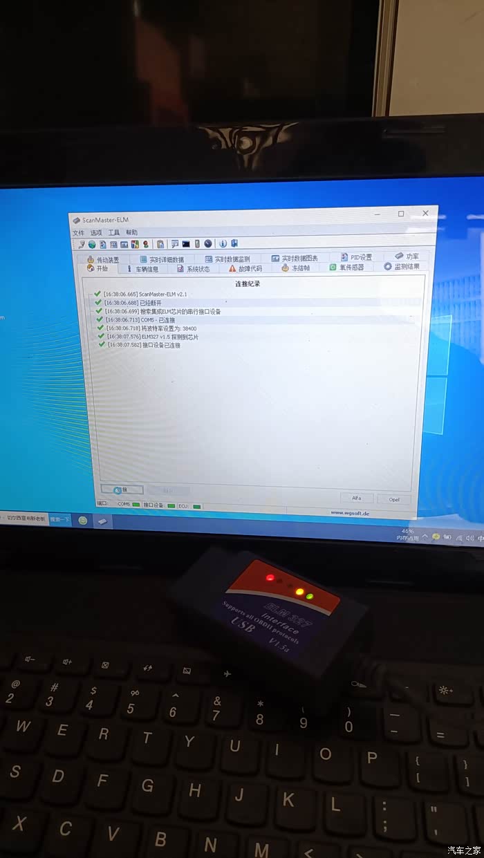 elm327诊断头成功与电脑连接