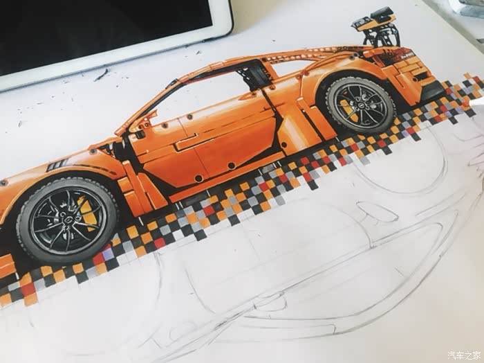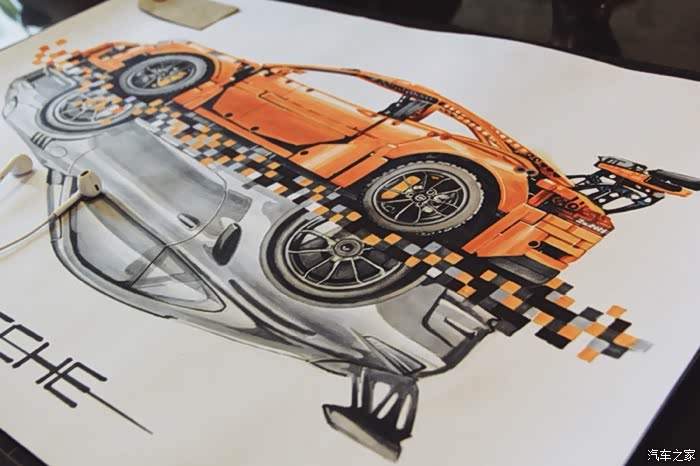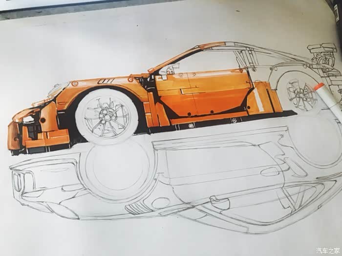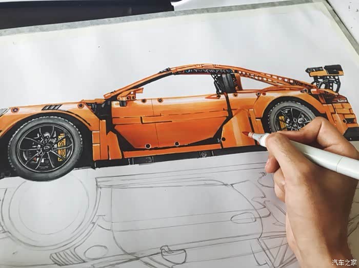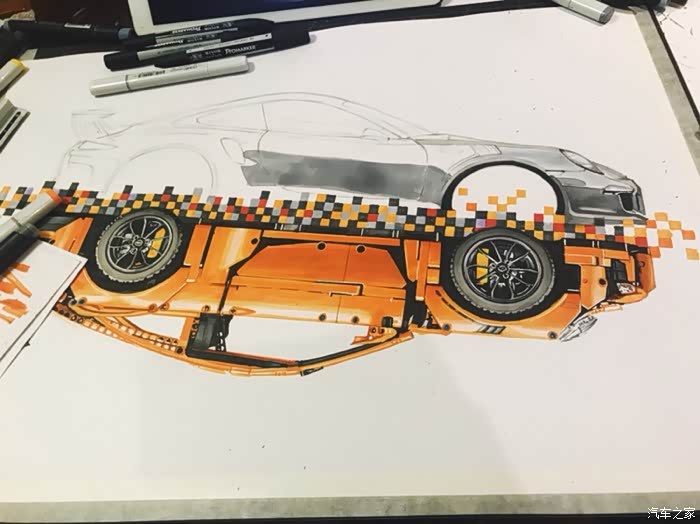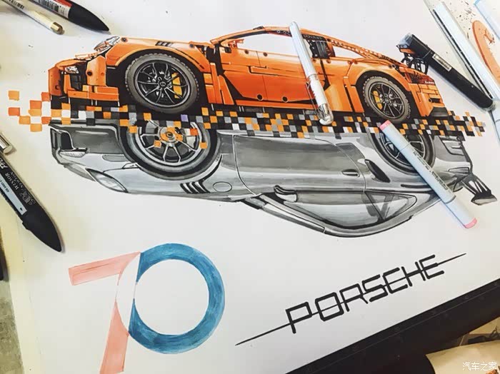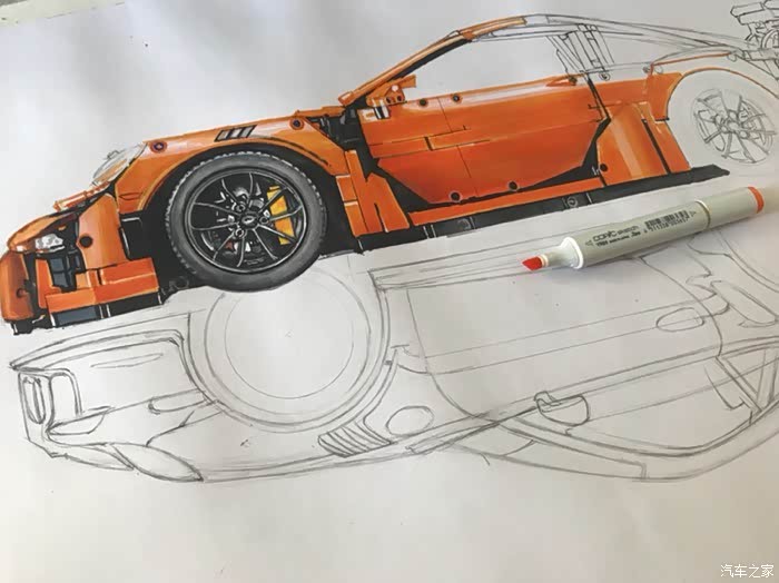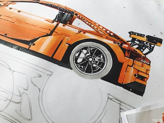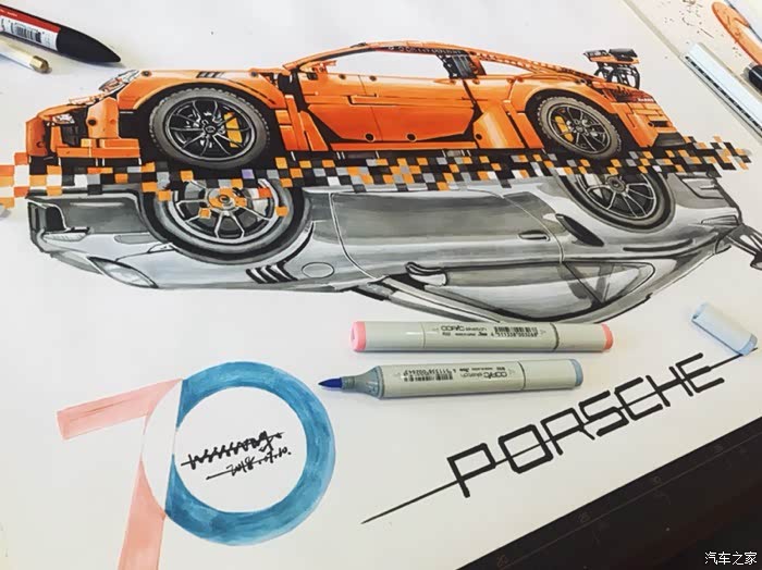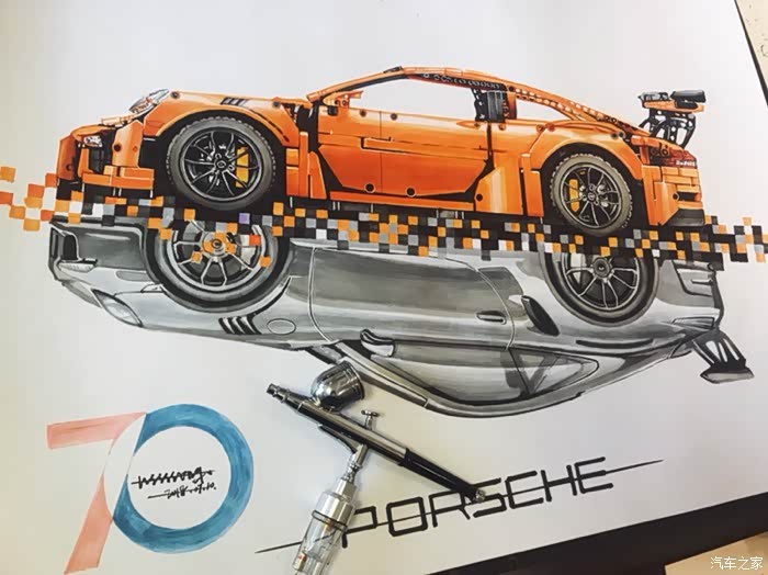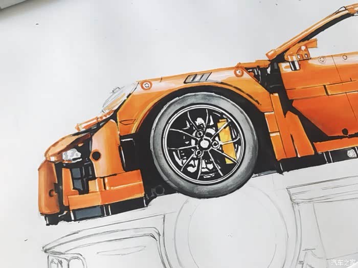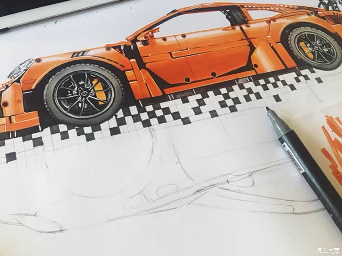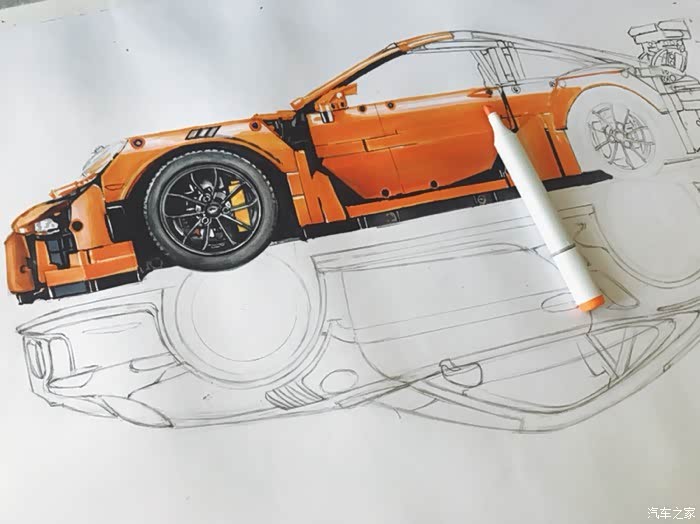 这是一幅构思很久有一些自己想法的画,对保时捷911这个车型说实话也不太知道该去怎么评价,仅一个911就衍生出了许多版本。从常见的s gts turbo 到赛道级别的gt3rs gt2rs 的成功,无一都彰显了保时捷的魅力。加上前些日子在乐高布加迪发布前微博被刷屏了,对这款玩具提起了点兴趣,入了自己觉得相对来说更好看一些的911gt3rs。