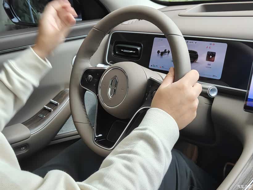方向盘手感很轻,女生开也不费劲,掉头的时候一把就能过。底盘有点偏软,过减速带的时候,颠簸感过滤得不错,坐在后排不会觉得颠,但过弯的时候侧倾有点明显,得放慢速度。