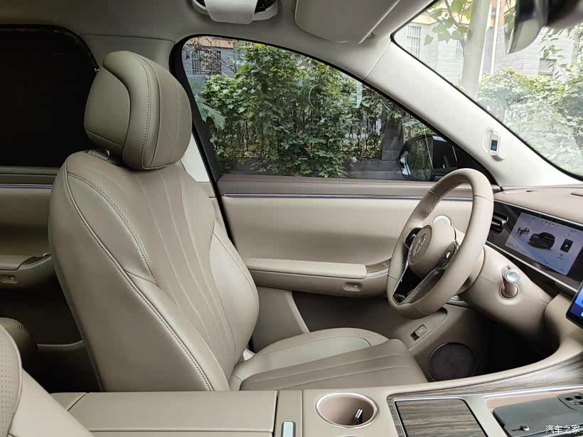 内饰选的松露棕,属于偏深的棕色,耐脏是真的,小孩不小心蹭上污渍,擦一下就没了。座椅是Nappa皮的,摸着手感确实比之前试驾的人造皮舒服,坐久了也不会觉得闷。