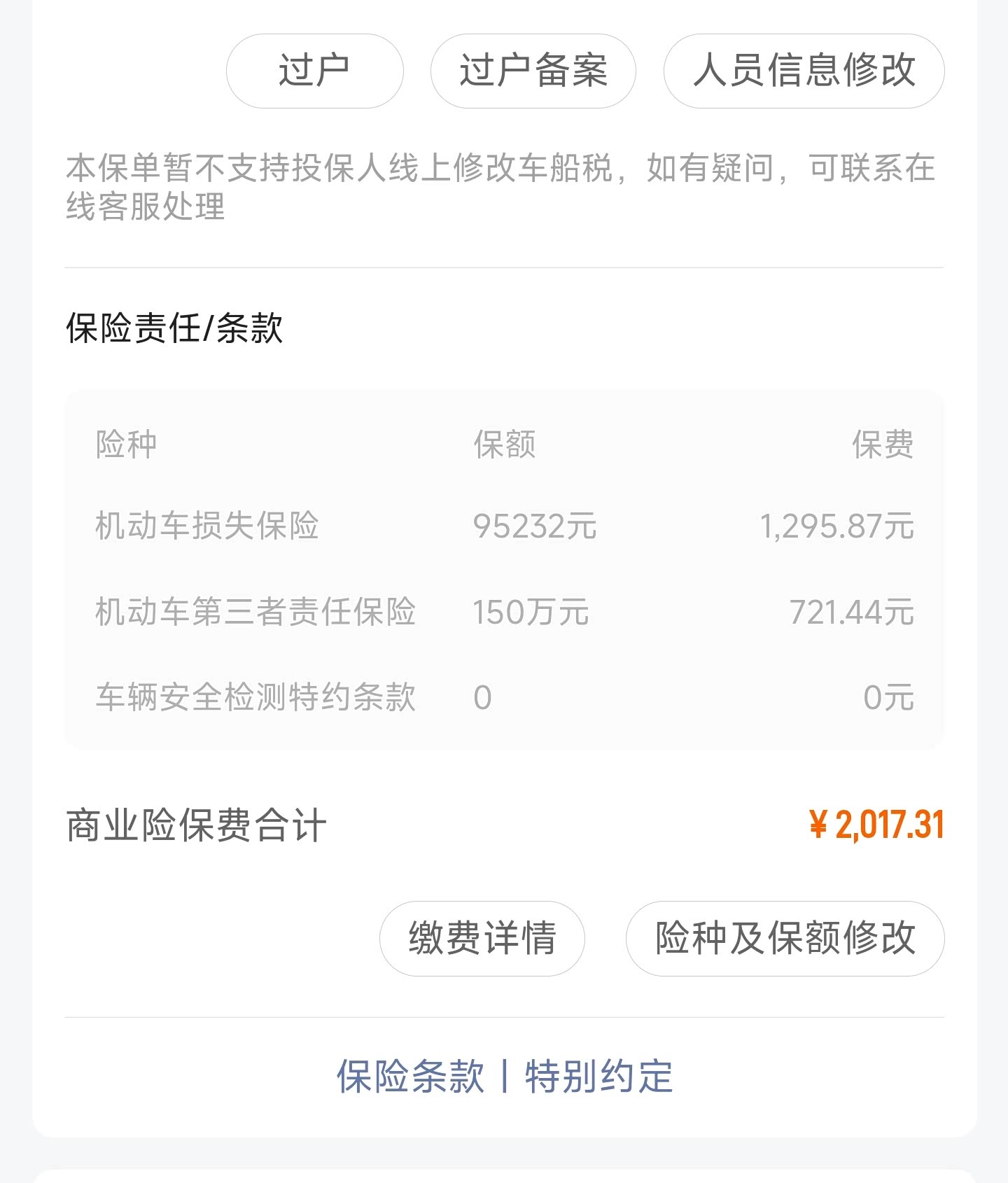 这是车损+150万三者+交强险+车船税的总价。保险公司返了300元购物卡,相当于实际现金支出2810元左右。新车第一年出险了,后面几年没出过险,折扣已经比较低了。建议车友们续保前一定多对比几家,或者找相熟的专员,赠品有时比直接降价更实惠。