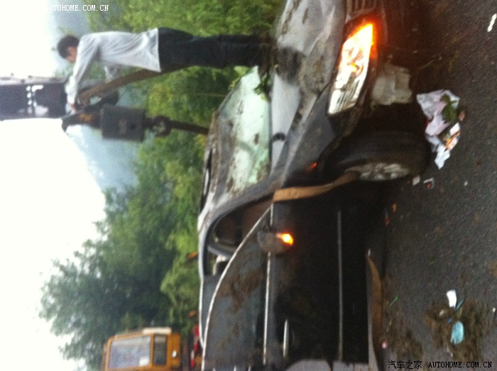 下雨天去参加外地参加朋友的婚礼时遭遇车祸,当时前面是弯道,遇到对面驶来一辆占道行驶的大客车,我哥们措手不及猛打方向盘,结果杯具发生了,车子从下河里,不过万幸的是当时车子先撞到一颗大树上然后翻到了河边,我们才都没有事情,但是更可气的是那辆大客车司机明明看到我们的车翻到河里去了,却扬长而去,都没有停下来救人,你们说可气不可气·····好了不说了,直接上图!