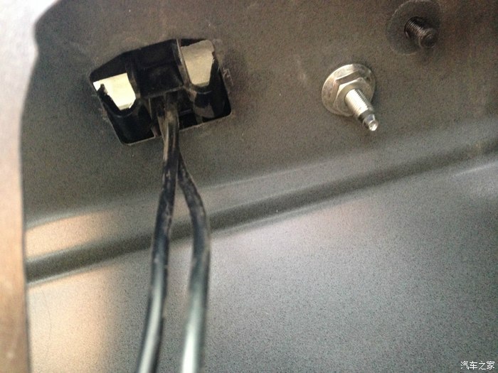 5、看到了上图摄像头右边那两个螺丝了吗,嗯没错,把螺帽拧掉就好了,那个就是后备箱外饰板的固定螺丝。