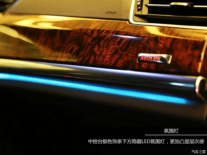 ▼A9旗舰版的氛围灯采用冰蓝色LED灯带,夜间能营造更高级的车内环境氛围