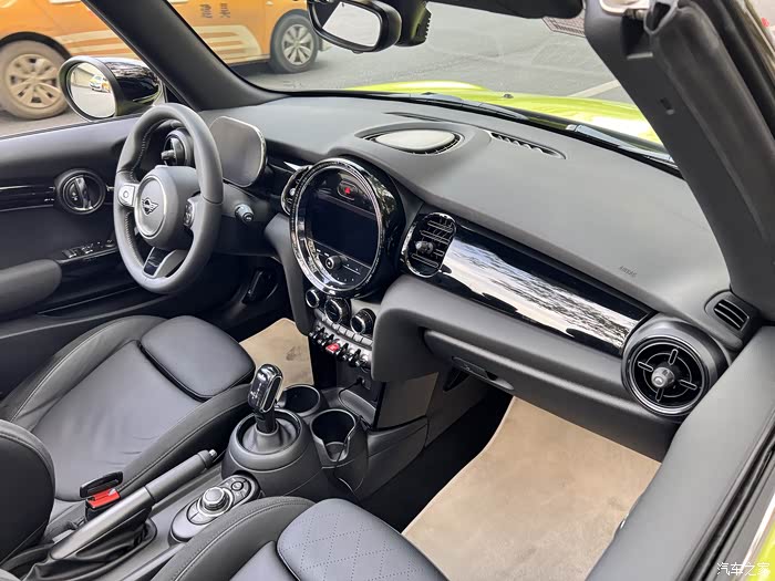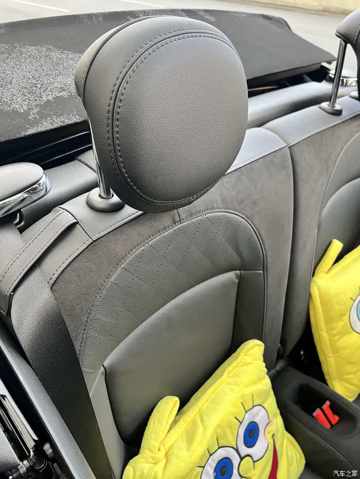 目前提车半个月左右吧,比较忙,开了100多公里,感觉就是可以带上家人一起敞篷兜风的感觉真不错,又找回了曾经开敞篷车的快乐。再就是这台车的驾驶感受很超出我的预期。首先就是小钢炮的紧致感,感觉底盘非常整,开起来很有信心,有绝对不止2,30万的车的高级感,我感觉开起来甚至超过了一般4 50万轿车的底盘水准,有种小跑车的感觉,操控也很好,车头短,转向很灵活。加之较重的方向盘和较硬的悬挂,开起来卡丁车或者718,z4这种小跑的感觉,当然动力上还是差点。及时车身在小,192p的马力。零百7.3的数据还是实在称不上马力充足的,只能说有驾驶乐趣。这个车车的排气也是一大亮点,非常浑厚,在2.0的车子里绝对非常不错的,不像宝马的味道,反而感觉有点像a35的那种感觉,曾经的coopers是有一点回火的,这一代由于颗粒捕捉器,已经没有回火了。我同期提了一辆宝马840,对比一下,mini的声浪更浑厚,从声贝的绝对值来说,居然也是mini比840大,这点我是很意外的。最后再说说空间,由于考虑到后排要做人,我肯定要看看后排空间的,敞篷mini的后排和三门版差不多,都不算小,坐个小个子或者小孩,包括上安全座椅都是可以的,舒服谈不上,只是相比三门mini,敞篷mini的后排座椅角度很直,必须依靠靠枕改变乘坐角度让后排坐着稍微舒服一点。总体来说以后装上安全座椅让宝宝坐上还是可以的。哦,对了在此吐槽一点,mini原厂新车居然不附脚垫,就是裸的,裸的!第一次买车没有脚垫的!吐槽!!!!!