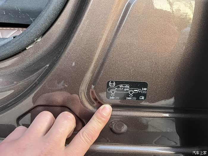 出行前要检查一下轮胎有没有小石子在轮胎缝隙里面,如果有用平口螺丝刀把小石子撬出来,一是为了高速行车轮胎安全不容易爆胎,再就是有石子跑起路来回有咯噔咯噔的声音,很是烦人。检查轮胎气压,我们长城炮自带胎压监测功能,如果低于2.5最好把气补一下,如果你拉重货2.8也是可以的,不知道胎压打多少合适的可以参考驾驶室下面B柱上的厂家给的合理胎压,出行随身携带一个充气泵有备无患。