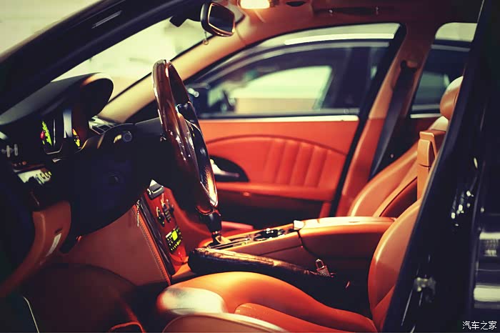 不变的是内饰的材质依旧豪华,毕竟是玛莎拉蒂的旗舰车系,总裁的内饰选材还是要比Ghibli好了不少,皮质摸起来很厚,尤其是车顶的翻毛皮,手感实在太好。实木的装饰也很得当,纹理漂亮,很显档次。我最喜欢的是新款方向盘,车标和金属装饰得实在太好看。还有仪表盘的做工非常细腻,看上去就像是意大利的艺术品。
