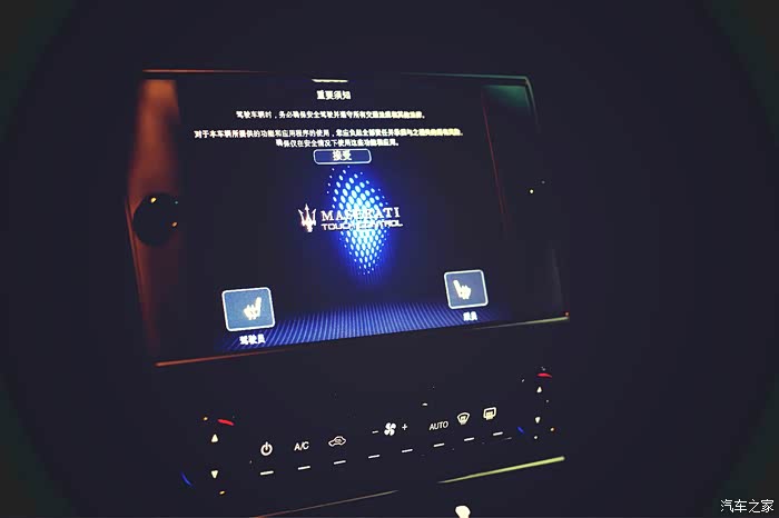 其实对于我个人而言,这台总裁还是很合适的。一直以来,我对那些越来越高科技的配置其实并不在意,很多时候甚至有些厌烦。各种辅助系统的干扰让开车变成了一件无趣的事情,而这台总裁却还保持着很多玛莎拉蒂的原始味道。从这一代总裁开始,玛莎拉蒂开始越来越多的重视人机工程学的操作体验,上代车型上有些让人发疯的中控台现在已经变的非常直观,一个大屏幕就搞定了所有操作。这也让整个内饰显得干净利落了很多,这是我很喜欢的。