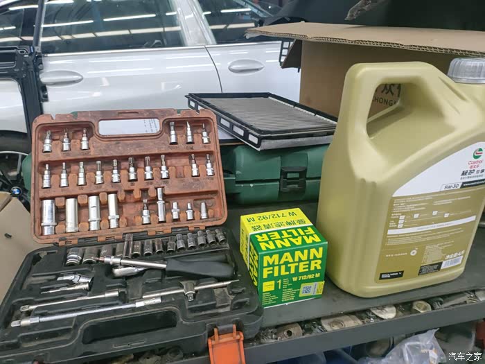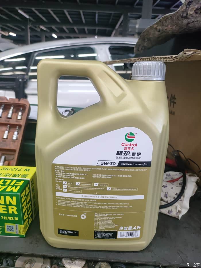 第三步:要换新机油了,因我的小朗属于涡轮增压的,需要用全合成机油,按照保养手册上只需要加5W-30型号就行了。