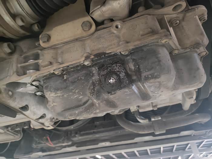 第一步,先释放小朗机油格的机油。然后再安装上新机油格。