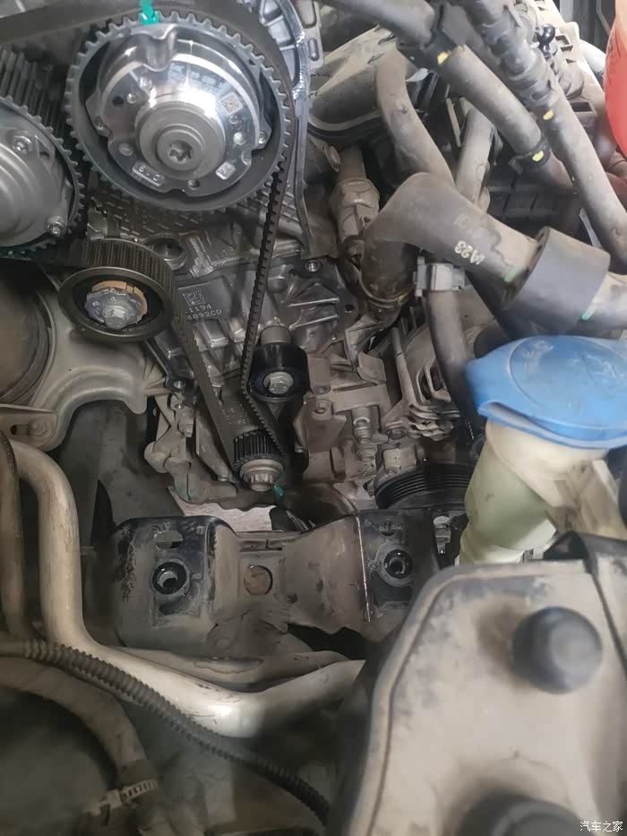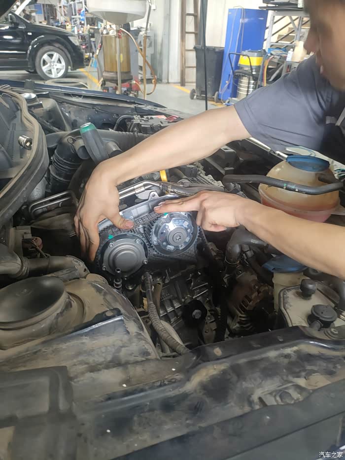 第七步:维修师傅要开始换正时皮带了,这个任务还比较繁琐的,里面要注意的地方非常多。这块耗时比较长。起码花了4个小时。我全程陪着师傅弄的。