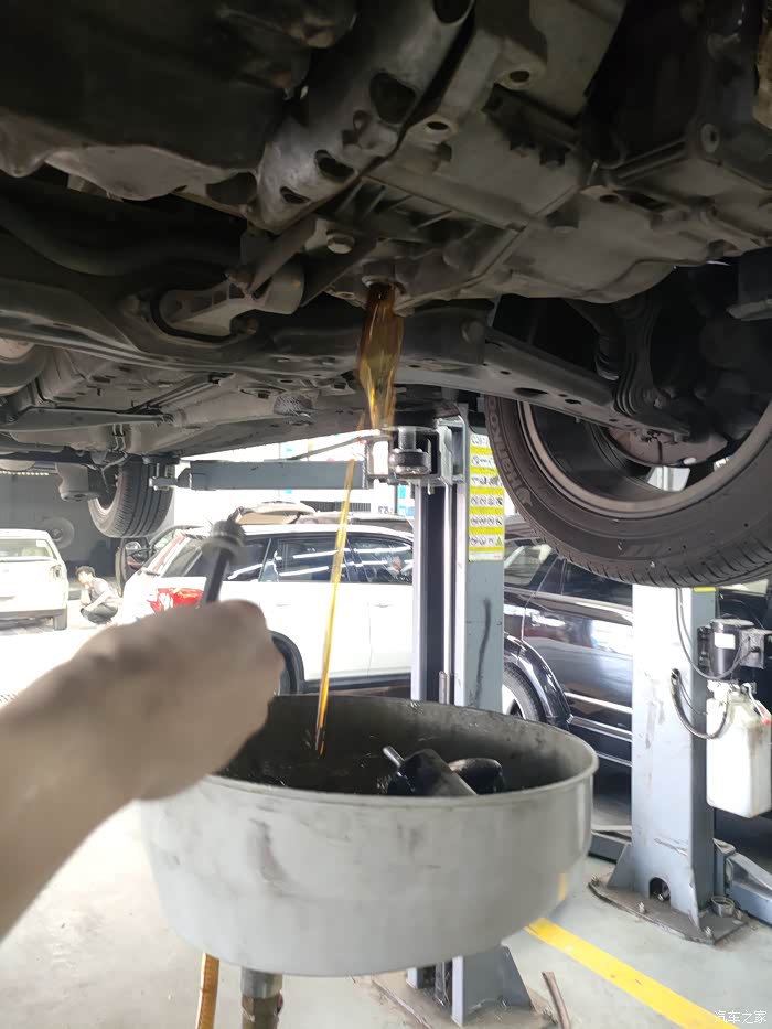 第六步:维修师傅开始换齿轮油了,换齿轮油前,维修师傅先将旧的齿轮油释放掉。齿轮油也属于变速箱油之一。