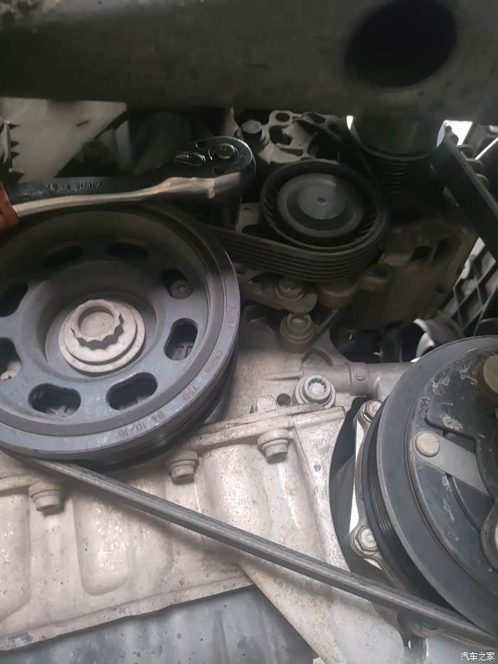 11、固定好皮带后,开始装涨紧轮、琨轮。师傅反复测试后,手动齿轮,确定正时皮带运行正常后,才开始将配件归位。