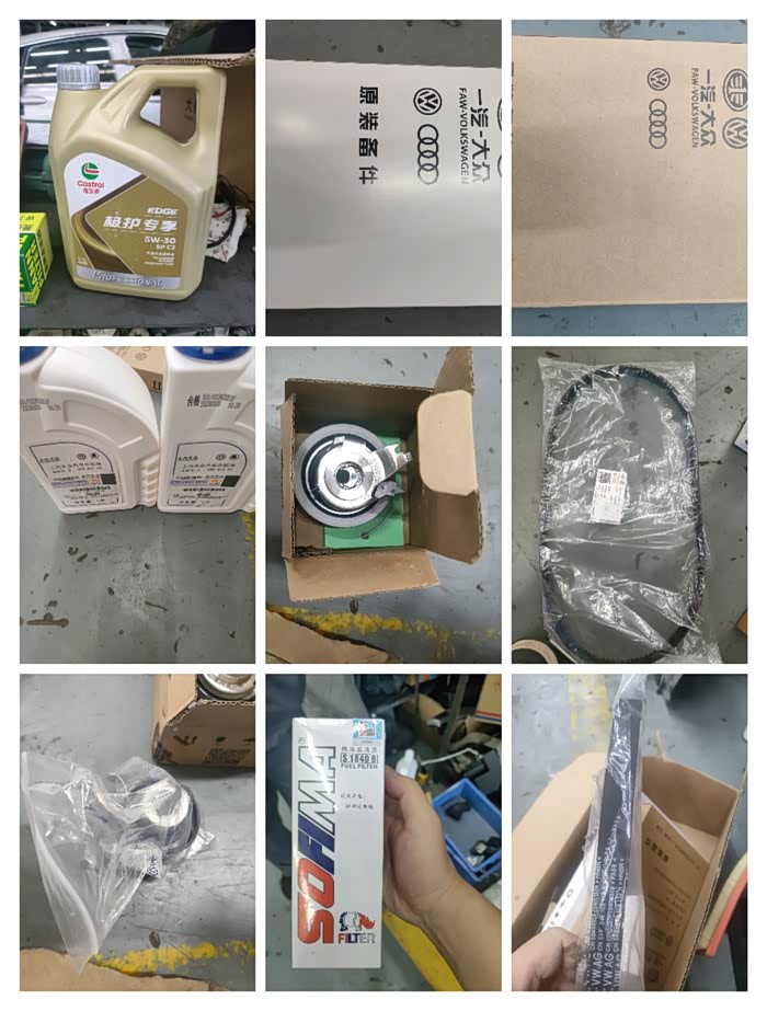 本次保养项目使用的材料:机油、机油格、机滤芯、汽油滤、正时皮带、涨紧轮、琨轮、空调滤芯、齿轮油。