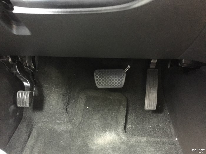 手刹(还是应该叫脚刹?)、刹车和油门。通用的刹车踏板明显比油门高一大截,前面一半很虚,后面一半劲儿很大,不知道为啥这么调教。