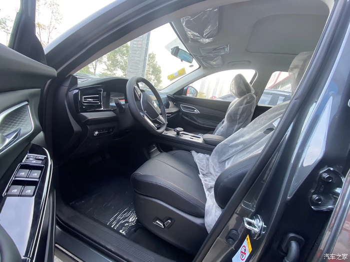 看到实车的第一眼,感觉比网上的图片好看。试驾的车和店里这台展车是同款,都是2024款 1.5T 自动尊崇型 7座,星际灰外黑内。