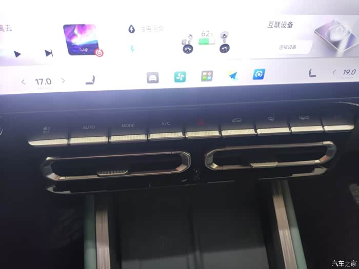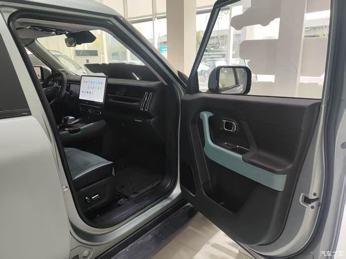 坐进车内,第一感觉是挺温馨居家的,同时科技感也营造得不错。中控台设计比较简洁,最吸睛的是那块大尺寸的悬浮式中控屏。仪表盘也是全液晶的,信息显示清晰。用料方面,手能摸到的地方,比如中控台顶部、门板扶手区域,很多都用了软性材质或皮革包裹,缝线处理也提升了档次感。方向盘手感舒适,实体按键和旋钮的质感和阻尼感都还行。整体氛围是那种精致、舒适的家用感,但通过一些细节(比如空调出风口造型、副驾前方的饰板、扶手)又带点个性。