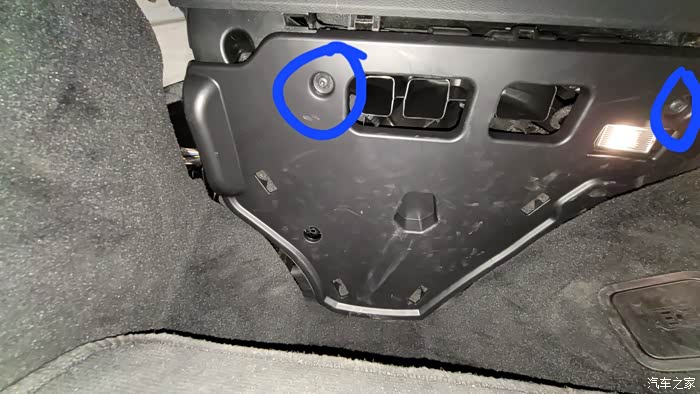 材料已经到手,那接下来就是动手时刻,之前查资料得知主要是把副驾驶前端,也就是手套箱下端的两个螺丝拧下,再把盖板拆下,然后就可以看到原始的空调滤芯了。。