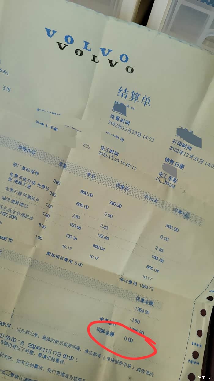 第一年保养的时候,就比较简单,基础保养就可以,机油机滤完事,唯一要注意让4S给020W的机油,当时很轻松做到零元保养。