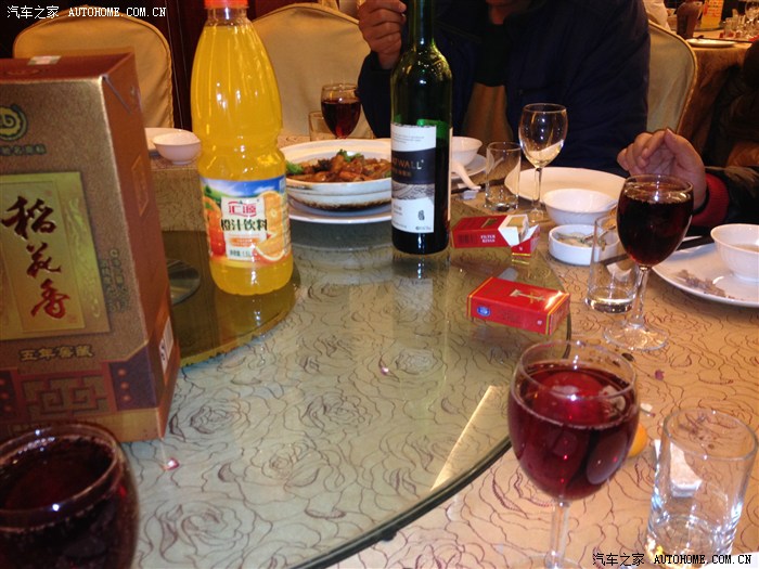 因为大家都开车,所以白酒就免了,都倒了点红酒,切~这雪碧也掺太多了吧。呵呵为了不乐极生悲,就当喝饮料了