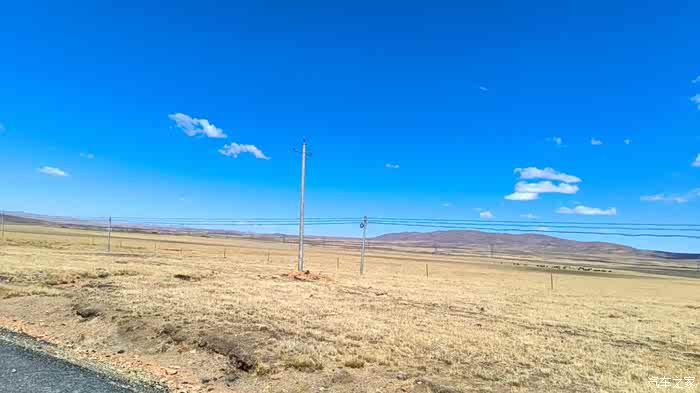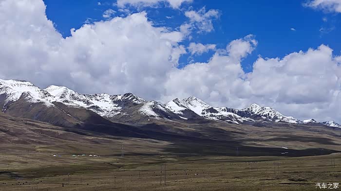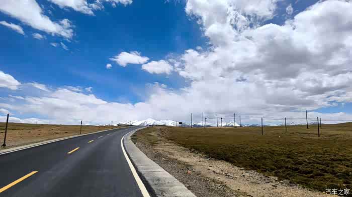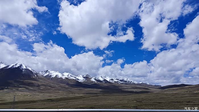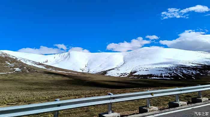 高原的景象,照片上看到的是蓝蓝的天,白白的山,看不到的是冷冷的风,直直的光。