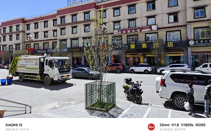 在外面收拾行李的时候,遇到也是住酒店在外面散步的大哥和大嫂,他们一看我们的车牌,川B,一下来了兴趣,他们也是 绵阳 的,318进藏准备317回的。然后聊起下面的行程,推荐我们去纳木错的话,到村委会那里拍日落很不错,贴心的给我们展示了地址。好的,记下。另一个 湖北 小哥说你们可以 上高 速啊,那拉高速现在试通行阶段,全程没卡没人,可以放飞自我。京B小哥也出来了,说你们双人还是不要走高速啦,违法的,也不安全,不要开那么快哪,安全到达是最重要。你看昨天我们遇到的那一群ADV帅哥,骑宝马那一群,就有个转弯冲出去啦。我就说是那群 河南 牌照的ADV车队么,我也有遇到过,很高大很威风很帅气呀。京B小哥说帅有个屁用,一个人摔出去全车队计划都要受影响,还是安全第一啦。说着说着行李收拾完毕,大家互道平安继续上路。