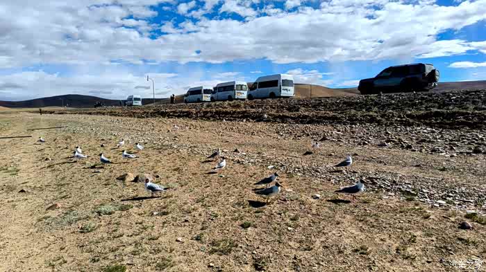 沿着去 班戈 县的省道206,从 当雄 到这里差不多60公里,公路离湖岸最近的地方,路边挖了沟,车辆都开不下去。离湖边大概有个6,7百米吧,不算近了。我拿着月亮椅往湖边走,路边已经有红嘴鸥在等着投喂了,看见我拿着口袋,跟着我一路,笑死。