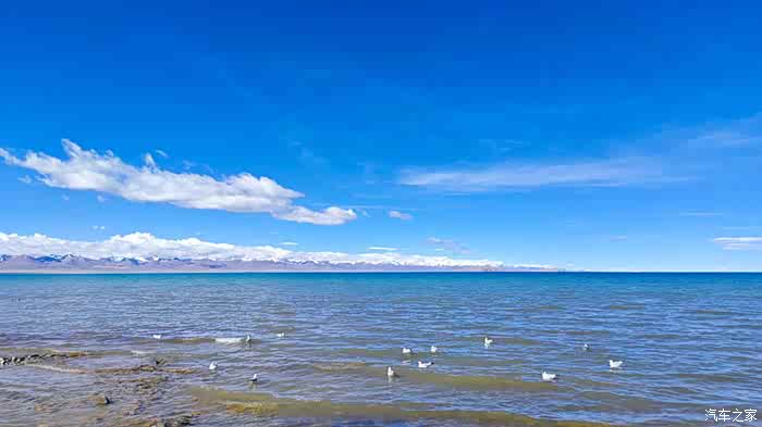湖边是有浪的,一层层,哗哗的,伴着海鸥的声声叫唤,闭着眼感受,很有海边的感觉,不过远处的雪山可以迅速驱散这种幻觉。