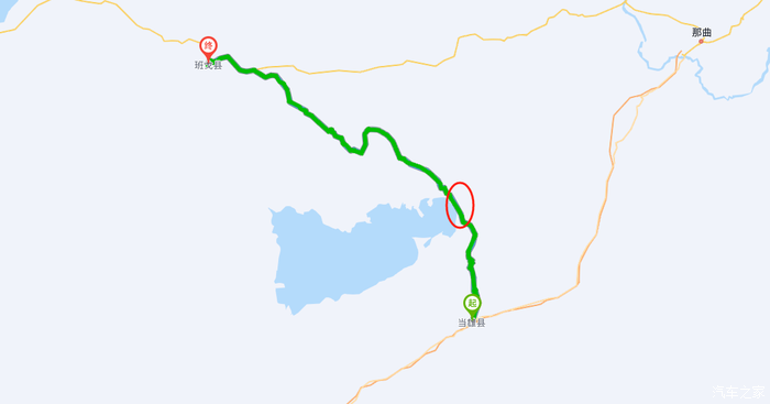 从 当雄 县出发,导航 班戈 县,那条省道206就是去纳木错的路,纳木错景区也在路上。