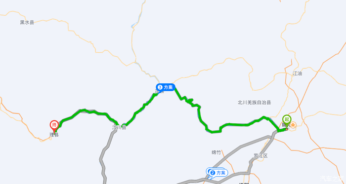 绵阳 到 理县 222公里
