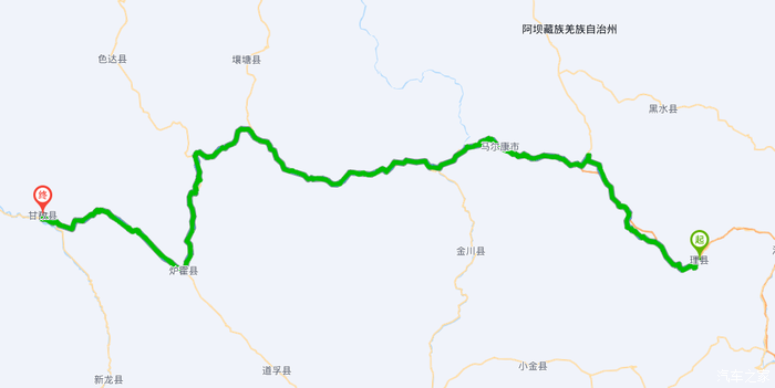理县 --- 甘孜 507km,这是严苛的一天,按照规划,需要日行千里。 马尔康 这座城建设得还不错,进城附近就遇上了各种奇怪方式进藏的人,什么推轮胎啊,拉小车徒步啦。。。中午在 马尔康 进行了短暂休整,就直奔 炉霍 县去了。因为之前的旅行我们到过刷马路口,所以 马尔康 之后的路段呢对我们来说就是完全陌生的了,新奇感抵消了疲劳。
