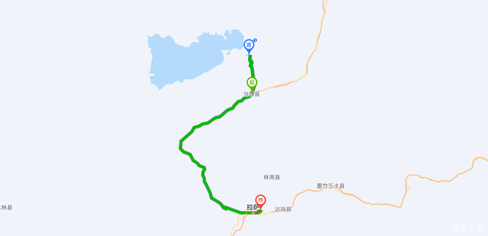 我们没打算去景区,景区要收门票不说,在游客集散中心(途 中方 框处,海拔4830)到景区还有不短的路,需要坐中转车。我们闲散惯了,就直接去红圈处的公路边,那里公路离岸近,更方便。